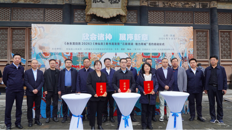 9月27日,由芮城縣人民政府、山西省永樂(lè)宮壁畫(huà)保護(hù)研究院、生活·讀書(shū)·新知三聯(lián)書(shū)店和文明碎片(北京)文化發(fā)展有限公司共同舉辦的《永樂(lè)宮日歷2026》《永樂(lè)宮·神仙志》圖書(shū)發(fā)布暨戰(zhàn)略合作協(xié)議簽約儀式在山西省運(yùn)城市芮城縣永樂(lè)宮舉行。文化學(xué)者、詩(shī)人余世存等嘉賓出席了此次活動(dòng)。