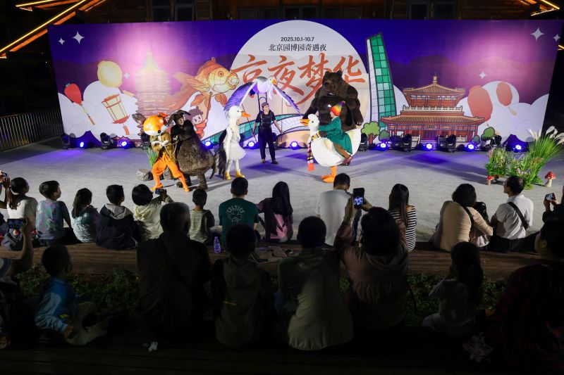 10月1日,北京園博園,市民觀看戲曲演出。國(guó)慶長(zhǎng)假期間,北京園博園為游客定制了 “白 + 黑” 沉浸式游玩方案,白天時(shí)段,第九屆中國(guó)戲曲文化周于9月29日至10月5日舉行,將有近 400場(chǎng)演出精彩上演。豐臺(tái)公益演出 ——“大戲看北京,好戲在豐臺(tái)” 也于十一期間在北京園博園鷹山劇場(chǎng)登臺(tái)亮相。
